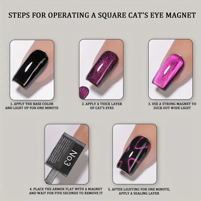 Transforme sua manicure com o nosso Kit de Ímãs para Olho de Gato, desenvolvido especialmente para criar efeitos magnéticos incríveis em unhas de gel! Com 5 formatos diferentes, você pode inovar nos designs, personalizando cada unha de forma única e impressionante.